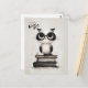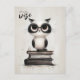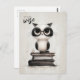 A back-to-school postcard with customizable "study wise" text with the illustration of a furry owl standing on top of a book pile.