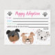 This adorable Puppy Adoption card is the perfect addition to any puppy themed birthday party. Pair it with a new stuffed puppy for your guests and let them take home an "official" adoption card. This card is completely customizable and can be changed to fit your specific needs.