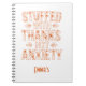 Keep your thoughts and notes organized with our 'Stuffed with Thanks Not Anxiety' spiral-bound notebook. The vibrant white cover featuring a motivational message in orange text makes it perfect for daily use or as a thoughtful gift. Made from high-quality materials, this notebook is designed to last. Personalize the color of the design and name by clicking 'Edit Design' or 'Personalize.' Embrace gratitude and let go of anxiety with this customizable notebook.