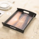 This is a well made, sturdy wooden tray with a flawless black finish and lovely map on the tray surface. It is both vintage & modern at the same time. Looks exactly like the photo; does not disappoint. So nice to find something of quality individually made and not the mass-produced 'shabby chic' merchandise seen in stores. I am so pleased to be able to give this to my college-age niece for her birthday. This can be used as a tray to hold jewelry or toiletries, or hung on the wall as art. The map surface is sealed (it is slightly shiny) so would be moisture resistant. It is well worth the asking price but I was able to apply a sale code as well. Very happy with my purchase. Map is crisp & clear and sealed with a water-resitant finish.