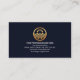 Overleaf, in a dark blue cover, the gold logo is at the top followed by your prestigious name, contact details and a slogan caption to publicize your services.
