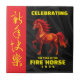 Welcome the Chinese New Year on February 17, 2026, with this tile, which features the stunning design of a fiery red horse with flame-like mane, tail, and flame motifs, on a faux black satin fabric. Text and messaging can be personalized in English and Chinese.