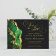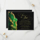 Stunning emerald green and golden bronze wedding save the date card by international artist Pauline Benjes. The gold is accented with rich jewel tones in swirls of liquid color. Luxurious metallic golden bronze with intricate jewel-like liquid emerald agate design. Sitting next to the art is an easy to edit template; to which the wedding details can be added. Stunning Emerald Green Black Gold Wedding Save the Date. See our collection for more formal wedding invitations and mailing accessories.