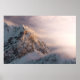 Wonderful sunlight shining on majestic mountains with the fog rolling over the snowy hill.