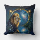 Add a touch of fantasy to your home decor with this throw pillow, which features a majestic lion with a flowing mane of stardust, gazing at a nebula reflected in a still pond. Reverse shows identical design.