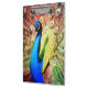 Our photograph of a brightly colored peacock in full color looks amazing on canvas, poster prints, or even greeting cards.