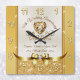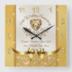 Gold Heart Shaped Diamond design embellishes this Stunning, Personalised Golden Anniversary Clock. Type in Couple's Name or Mum and Dad. You can TRANSFER this beautiful 50th Anniversary Clock to THOUSANDS of other personalised 50th wedding anniversary gifts and party supplies. CALL Designer Linda: 239-949-9090 EST 10am to 7pm for Design, COLOR, YEAR, Occasion and Product CHANGES.
