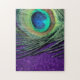 Beautiful peacock feather still life. The soft glow of the photo brings out the stunning colors of the peacock feather. A soft purple background is a perfect accent.