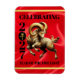 Elevate your 2027 lunar new year entertainment experiences with this celebratory flexible magnet, which features the Fire Goat dancing on a luxurious faux red silk background with the Chinese letterform for the Goat/Sheep/Ram rendered in faux gold foil, standing in place of the zero in 2027.