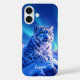 Add a supernatural touch to your phone with this phone case, which features a majestic snow leopard with piercing blue eyes, its fur adorned with intricate patterns of frost and ice, as it perches atop a snow-capped mountain outcropping that's backlit by the setting sun and the aurora borealis. Personalize with a name!