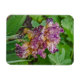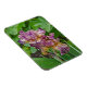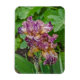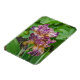 Beautiful double iris in shades of purple and yellow against a background of green leaves
