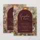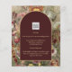 Beautiful vintage botanical art wedding item featuring burgundy, terracotta flowers and arch.