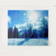 Get away from it all with this stunning alpine winter scene with pine trees, bright white sunshine and mountains in the background.