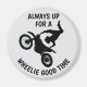 Add a touch of adventure to your fridge or magnetic surface with this fun magnet. Featuring a bike stunt rider mid-wheelie and the playful phrase “Always Up for a Wheelie Good Time,” this magnet is perfect for cycling enthusiasts, adrenaline junkies, or anyone who loves a good pun. It’s a great way to showcase your love for biking with a dash of humor.