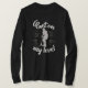 I love this shirt. I had written to the artist asking her if this picture was available on a shirt, and she wrote me back telling me where I could find the shirt. These shirts can be custom made to have a different saying. I loved this saying and went with it. The artist wrote me back later to tell me that she had seen my order go through. How's that for service? Pretty special. It's just as displayed. Perfect!