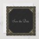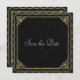 Elegant and stylish gold border on textured black background "Save the Date" card that can be customized.