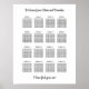 Stylish 16 Table Wedding Seating Chart Poster, please personalize the names of the couple and the names of the guests along with any of the other text that you may wish to personalize. A simple minimalistic poster featuring modern black text in a stylish layout on an elegant white background.