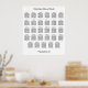 Stylish 29 Table Wedding Seating Chart Poster, please personalize the names of the couple and the names of the guests along with any of the other text that you may wish to personalize. A simple minimalistic poster featuring modern black text in a stylish layout on an elegant white background.