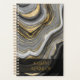Personalized planner with trendy agate in black and gold marble. The semi-opaque black panel gives a stylish base for your name, which is lettered in decorative uppercase typography. Please browse our store for coordinating gifts and agate phone cases.