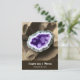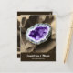 Stylish custom postcard is perfect for those in the gem & lapidary arts industry, events such as a gem & mineral show, or for those who sell healing crystals and such. Design features a purple amethyst geode ( design created with AI rendering software) with room to add your customized company name, website or other information on front and back. Great for small business advertising!