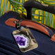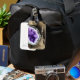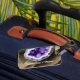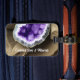 Stylish luggage tag design is perfect for those in the gem & lapidary arts industry, events such as a gem & mineral show, or for those who sell healing crystals and such. Front features a purple amethyst geode ( design created with AI rendering software) with room to add your customized company name or other message.