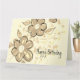 Creamy brown floral folded happy birthday paper greeting card, text inside and out can be personalized to any message to suit any special occasion. The elegant cream background can be changed to any colour to compliment your style.