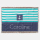 Stylish Aqua Navy Stripes Nautical Anchor Custom Throw Blanket
