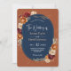 Stylish autumn orange navy floral wedding invitation