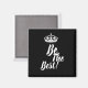 Stylish and Funky Be The Best Crown Motivation Magnet to add to your fridge collection. A cool gift / present idea for all who love collecting magnets, custom design personalized items, positive vibes, traveling, art, fun, minimalism etc. Keywords: white, adventure, motivation, motivational, inspiration, inspirational, self esteem, soul, meditation, power, growth, improvement, goal, goals, targets etc.