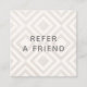 Unique square refer a friend card with beige and white geometric pattern background. For additional matching marketing materials, custom design or