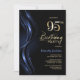 Invite your friends and loved ones to your 95th birthday with this stylish black and blue birthday party invitation. The customizable text area in this invitation template allows you to effortlessly include all the necessary details for your special birthday celebration, including the date, time, venue, and RSVP information. A variety of paper types and corner styles are available for your unique invitations, along with the option to download if you prefer a digital format.