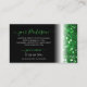 Make a lasting impression with this eye catching and stylish business card design featuring shimmery green glitter with bright stars and on the reverse side there is a black background with a glitter border.