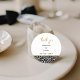 The Stylish Black and White Foliage Thank You Classic Round Sticker is part of the Chic Leaf Pattern Border Wedding Invitation collection, designed to complement a formal black-tie wedding theme. It features a “Thank you”, the names of the newlyweds and the date of the special event. The bottom shows a foliage border. To customize the sticker for your wedding, simply insert your thanks, name and date. All colors can be customized by following the edit link. For further inspiration and planning ideas, please visit www.KBMD3signs.com. To discuss your custom design requirements, please contact us at info@KBMD3signs.com.