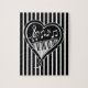 Stylish Black and white musical notes and piano keys in a love heart on black and white striped background. Great gift for any music lover or nusician