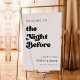 Welcome to the Night before: rehearsal dinner signage. A retro chic theme: adopt this slightly vintage and stylish typographic design for your wedding stationery, with a classic black and white theme. Customizable text, colors and backgrounds.
