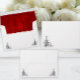 This classy and very contemporary-looking wedding envelope features a lush, red velvet pattern printed on the inside. It also features a decorative pair of black ornamental flourishes on the outside on the back, and a larger black ornament in the left hand corner on the front. This envelope was made especially to match a wedding suite which includes matching invites, enclosure cards and more which you can see (above).