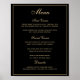 Position this wedding menu poster in a prominent place for your guests to see. This menu is on a black background with gold text.