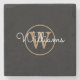 Stylish Black Gold Monogram Script Name Stone Coaster