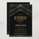 Celebrate your colleague’s retirement with this stylish black and gold geometric retirement party invitation.