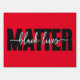 Modern social justice Black Lives Matter message with "Matter" in bold black letters and "black lives" in white script overlay on red background