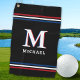 Introducing the perfect accessory for any golfer or golf lover - our sporty red white and blue monogram golf towel! With its classic yet stylish design, this golf towel is sure to make a statement on the course. Featuring red white and blue stripes, it is the perfect blend of patriotic, preppy and sporty.
