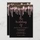 Stylish black rose gold glitter drips wedding invitation