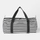 Carry your essentials in style with this Small Duffel Bag featuring black stripes on a crisp white background.