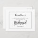 A convenient way to ask this special question Will You Be My Bridesmaid. This minimalist wedding design has pretty black typography and frame. Text (other than the script for Bridesmaid) is easily personalised and the background color can be changed if you so wish