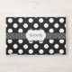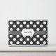 Stylish HP laptop skin done in black with big white polka dots. A black with small white polka dot stripe runs across the middle, with a white decorative text area. Personalize the black script text to suit your needs. Great way to personalize your laptop with a fun look everyone will ask you about.