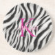 Stylish Black White Zebra Animal Pink Monogram Coaster