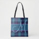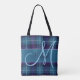 Stylish Blue Plaid Tartan Modern Personalized Name Tote Bag