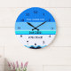 Stylish Blue Stripes Wave Family Name Beach House Large Clock