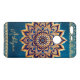 Unleash your inner boho yogi. This stylish phone case features a painted floral mandala that is blue and gold, with some teal accents. Shading makes the mandala appear 3-D like its popping out from the phone. Mandala is on an indigo blue background that has a faux velvet appearance. Customize your phone case and add your name, any text, or remove text as desired, personalize it to make it even more perfect for you or for a gift. Design is available in many different phone brands and models!