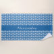 Stylish beach towel features Greek swirly repeating floral pattern in blue and white. Personalize with name or other special message. Perfect for home, vacation, or to brand your short term rentals.
